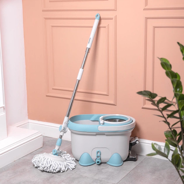 Комплект швабра з відром та віджимом для підлоги телескопічна ручка мікрофібра для прибирання будинку (525119)
