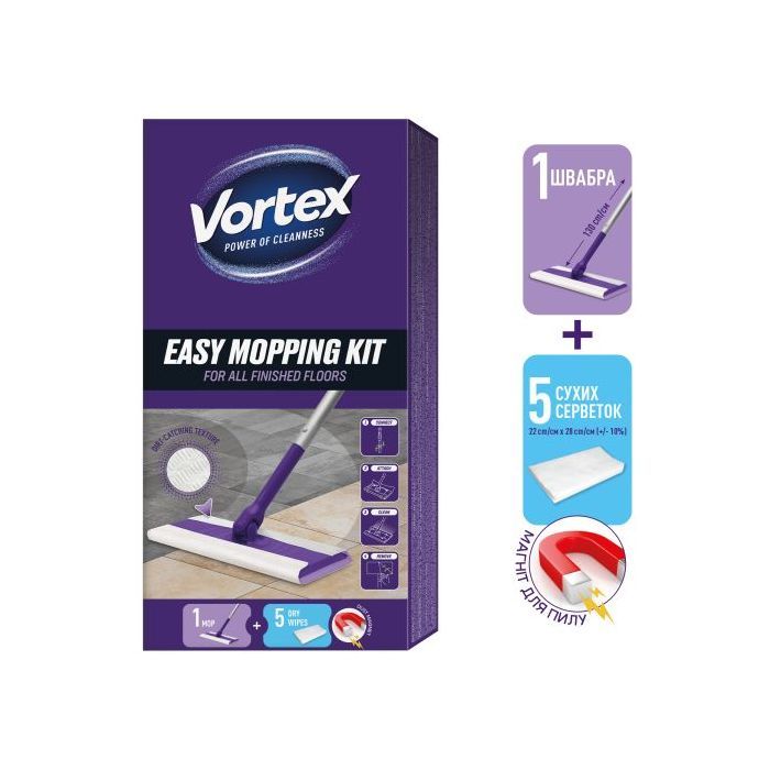Швабра Vortex Для прибирання підлоги + Сухі серветки для підмітання 5 шт. (4823071667431) 4823071667431