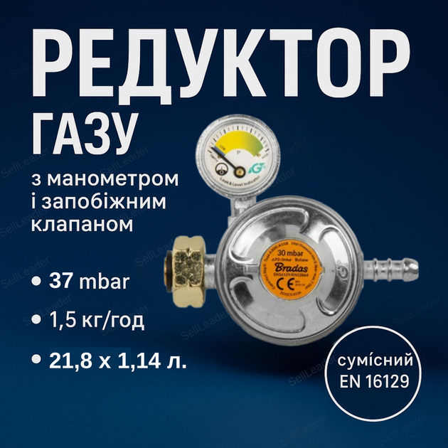Редуктор газовий Cellfast KLF G12, євро стандарт, 37мбар, 1.5кг/г