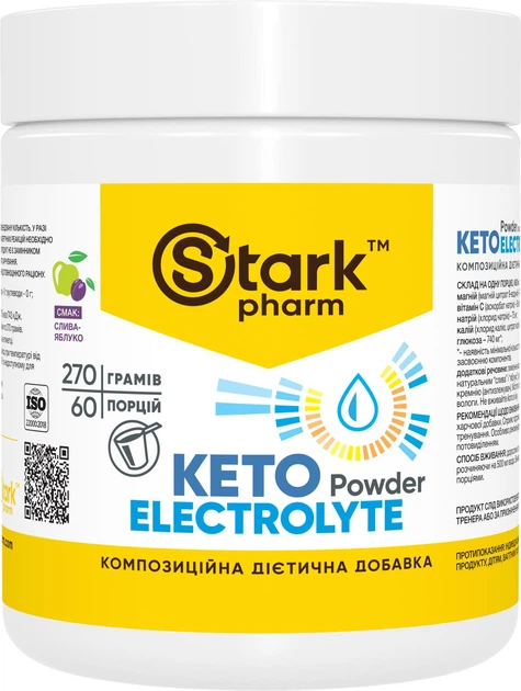 Ізотонік Stark Pharm Keto Electrolyte Powder, електроліти для повсякденних тренувань 270 грамів слива-яблуко (17432)