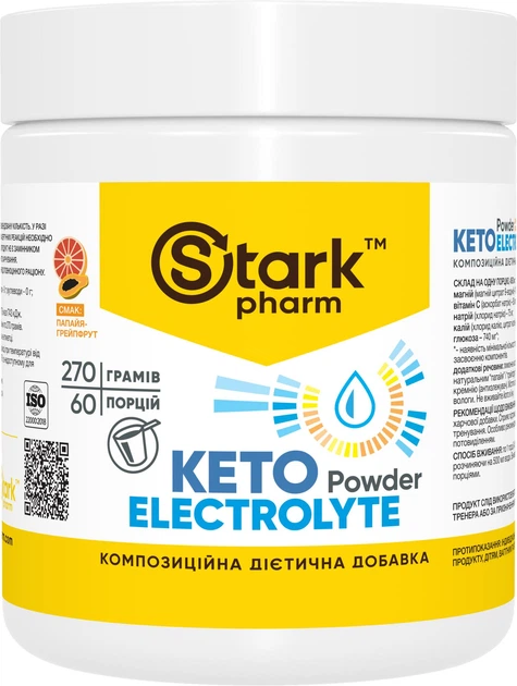 Ізотонік Stark Pharm Keto Electrolyte Powder, електроліти для повсякденних тренувань 270 грамів папайя-грейпфрут (17430)
