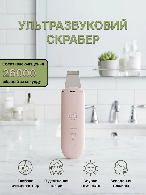 Ультразвуковий скрабер для обличчя (EMS, ION, 400 мАг, USB Type-C)