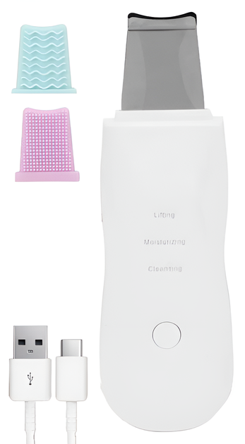 Ультразвуковий акумуляторний апарат скрабер для чищення пор обличчя з насадками 2 штуки 3 режими роботи 1,5 Вт (479872-Prob)