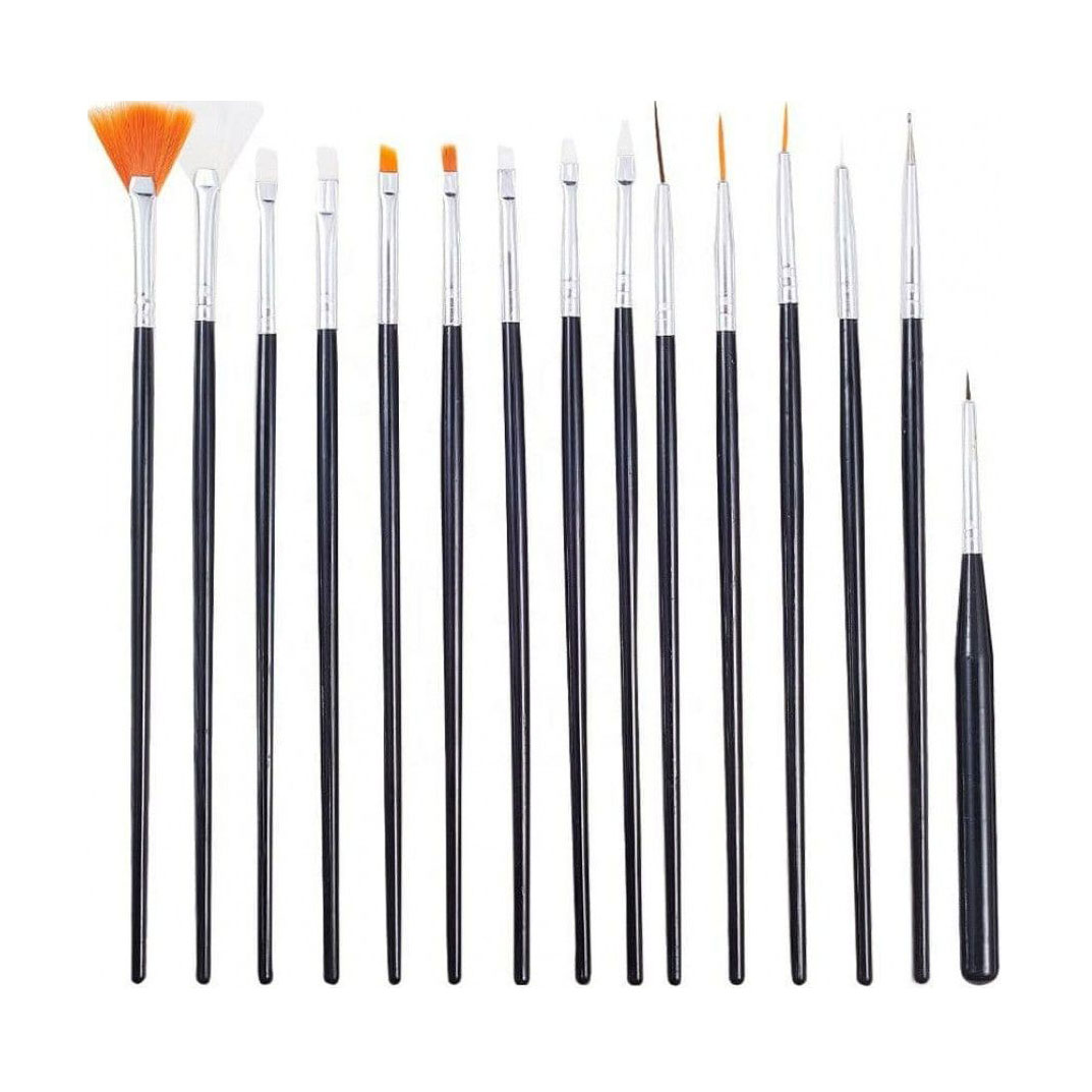 Набір пензликів для дизайну нігтів Cosmo Shop чорна ручка, 15 шт (CS27B)