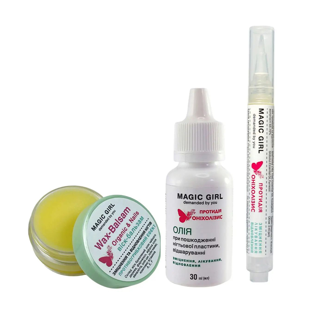 Набір для нігтів та кутикули Magic Girl Комплекс проти оніхолізису (олія, 30 мл + віск-бальзам, 10 мл + олівець, 3 мл)