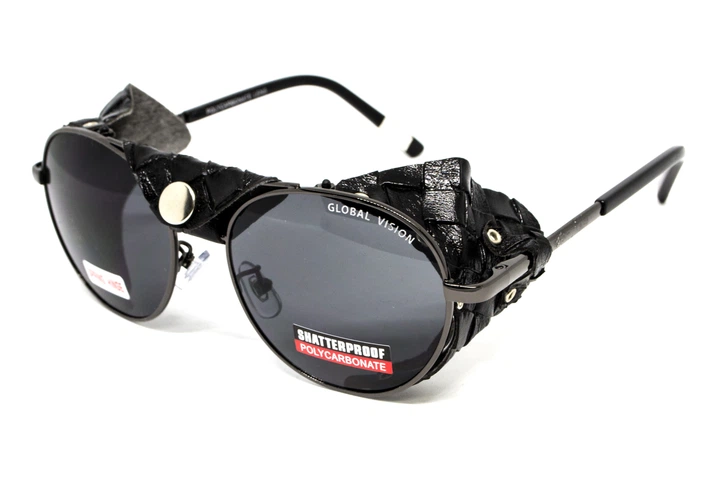 Окуляри захисні Global Vision Aviator-5 GunMetal (gray), сірі в темній оправі зі з'ємним ущільнювачем із синтетичної "шкіри"