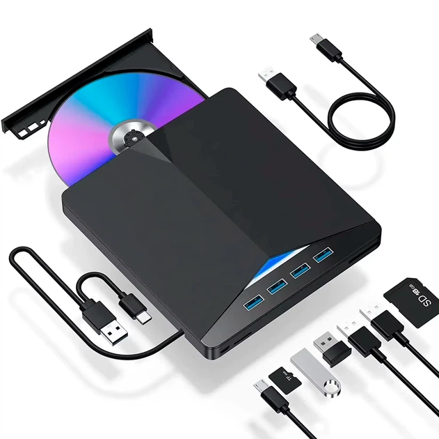 Зовнішній оптичний привід 9в1 CD/DVD DrawPen UltraHub X9 з USB + Type-C хабом і кардрідером — портативний дисковод для ноутб