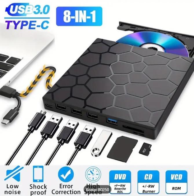 Зовнішній USB 3.0 DVD RW CD Тонкий оптичний привід Lefon 7-1 Записуючий плеєр Пристрій для запису Зчитувач карт пам'яті Прог