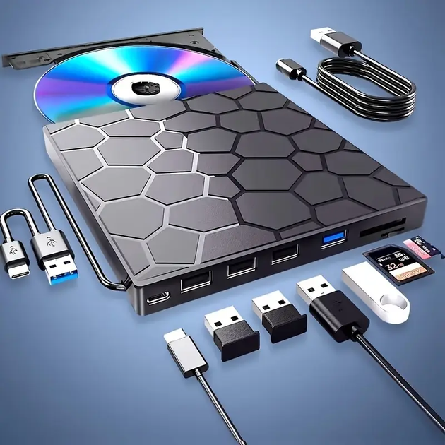 Зовнішній DVD/CD привід із USB хабом TYPE-C 3.0 багатофункціональний записувач