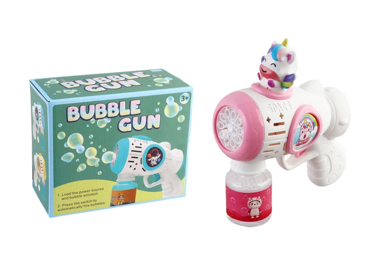Генератор мильних бульбашок на батарейках Bubble Gun Єдиноріг з підсвічуванням білий