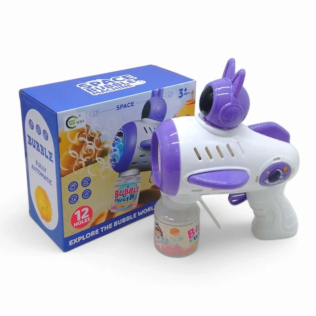 Пістолет з мильними бульбашками Зайчик-космонавт, на батарейках (бузковий) WBX 668-102