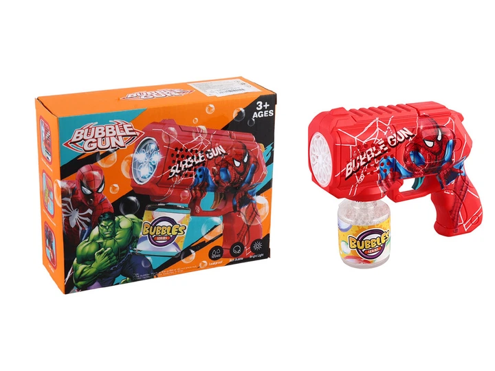 Генератор мильних бульбашок на батарейках Bubble Gun Людина павук підсвічування червоний