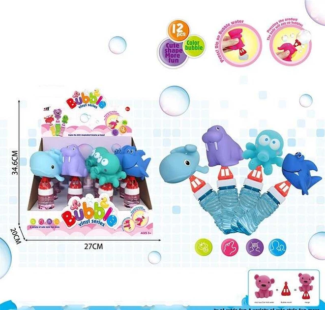 Мильні бульбашки SDH 302-17 ЦІНА ЗА 12 ШТУК У БЛОЦІ, гумові тваринки, у коробці