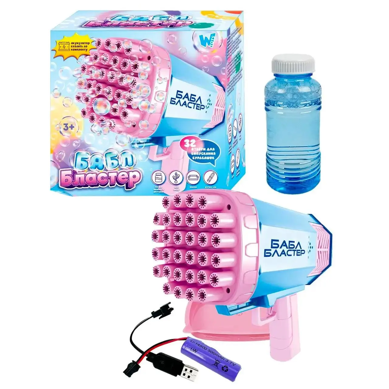 Пістолет з мильними бульбашками, акумулятор 3.7 V, 32 отвори, зі світловими ефектами (В асортименті)