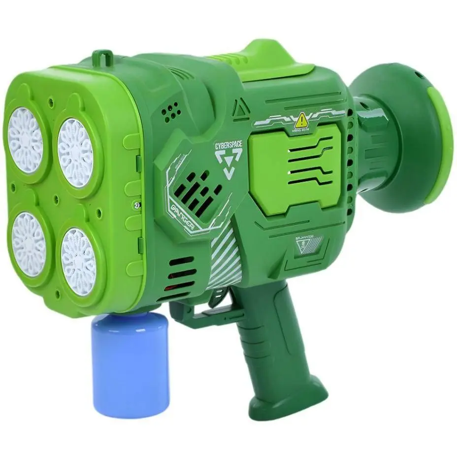 Мильний бластер LS7727-48G пістолет для мильних бульбашок, 32 см, з підсвічуванням, акумулятором і запаскою зелений