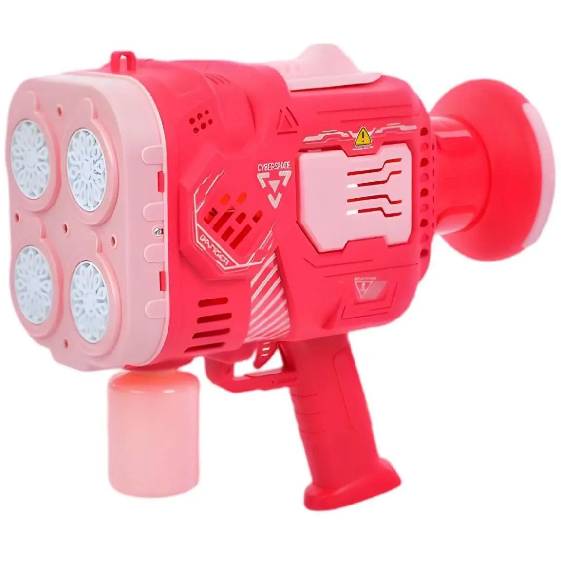 Мильний бластер LS7727-48G пістолет для мильних бульбашок, 32 см, з підсвічуванням, акумулятором і запаскою рожевий