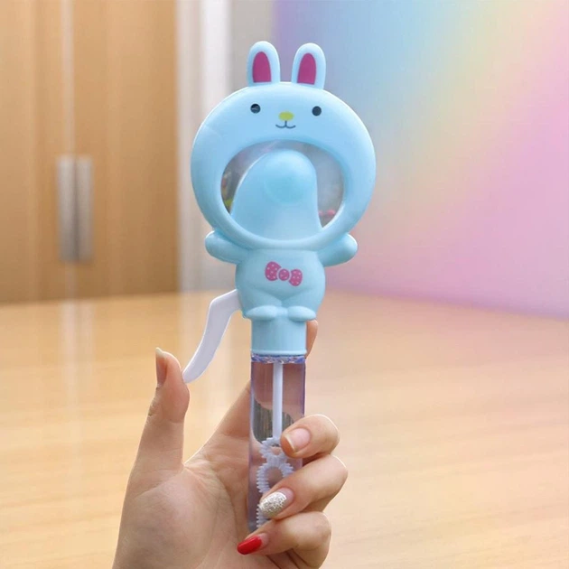 Мильні бульбашки з механічним вентилятором 2в1 "Зайчик", 21см, Блакитний