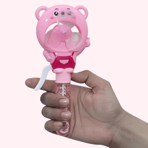 Мильні бульбашки з механічним вентилятором 2в1 "Ведмедик", 21см, Рожевий