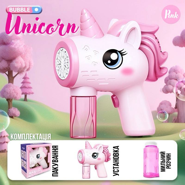 Пістолет з мильними бульбашками Bubble Fun 199 Рожевий Єдиноріжка