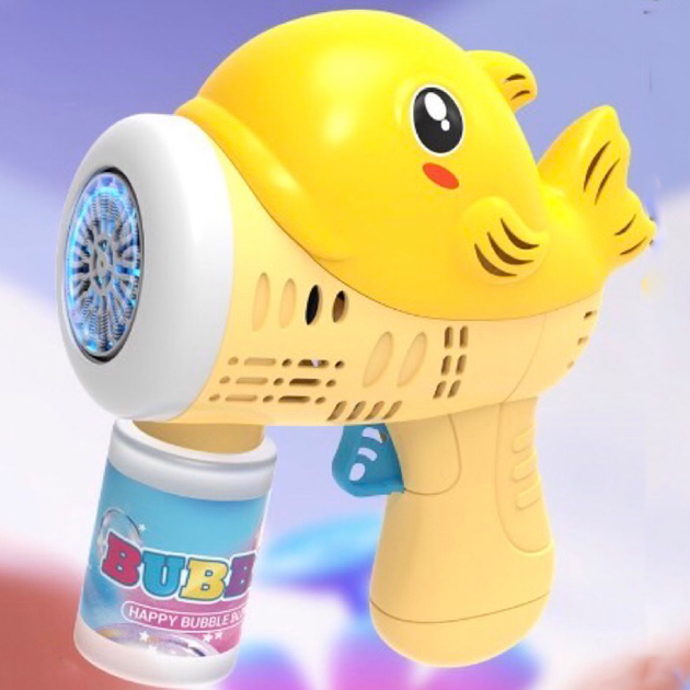 Пістолет мильних бульбашок на батарейках 40 отворів Rocket дитячий генератор мильних бульбашок жовто-синій