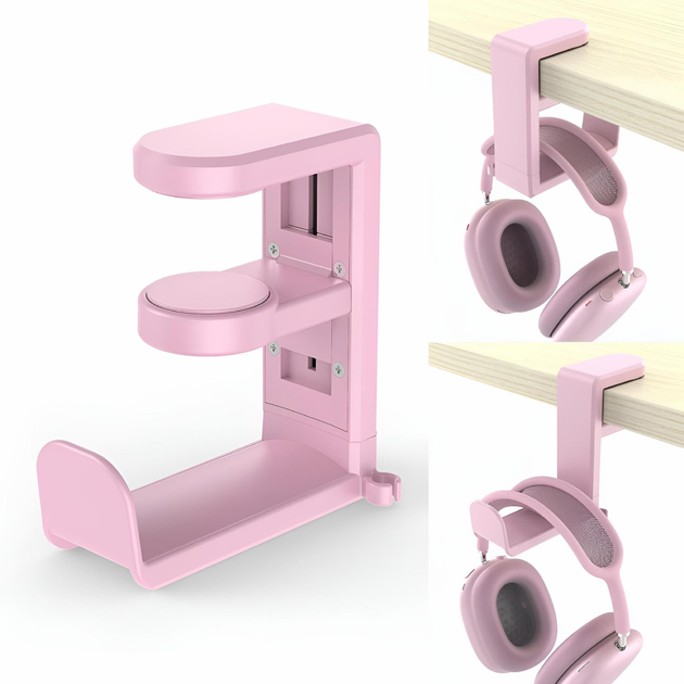 Тримач для навушників з кріпленням до столу. Біло-рожевий, Тип-7