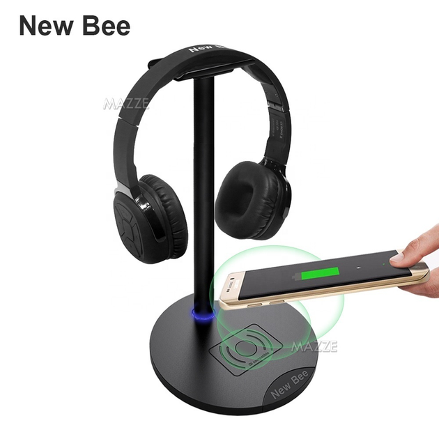 Підставка для навушників 2в1 зарядний бездротовий для телефону 10W New Bee NB-Z4B Black