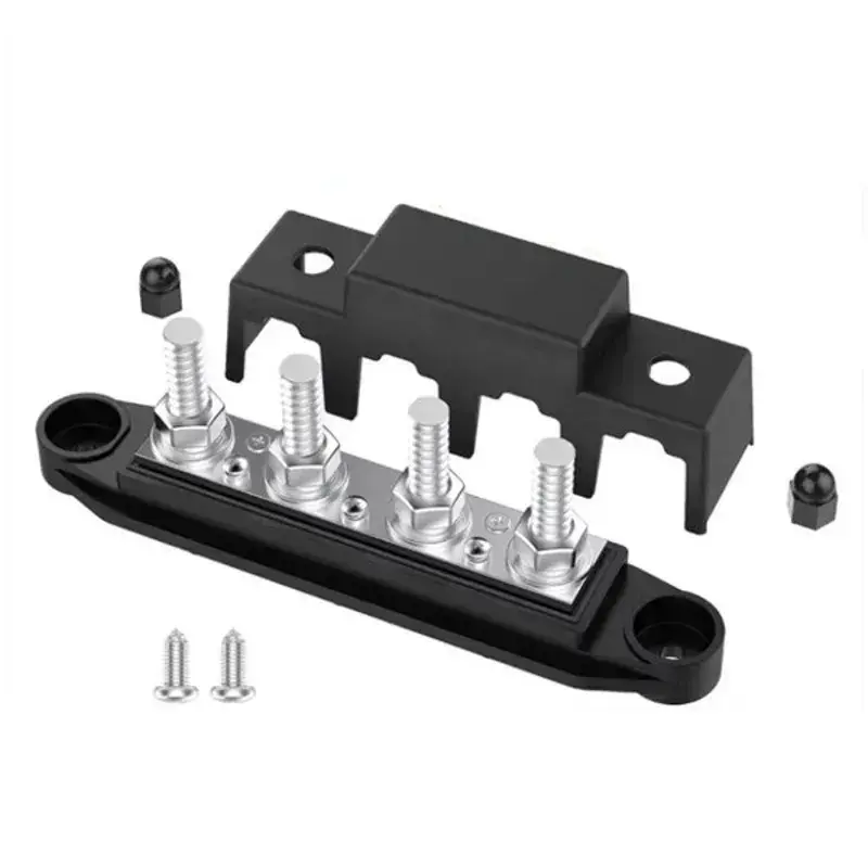Розподільний блок з шиною Bus Bar з 4-ма шпильками М8 для з'єднання кабелів 12-48V DC, до 250A (чорний)