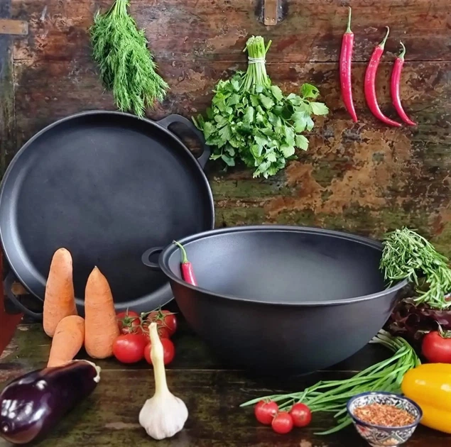 Казан чавунний узбецький WOK з кришкою-сковородою 18 л