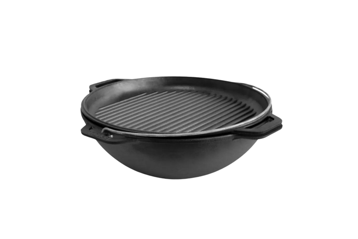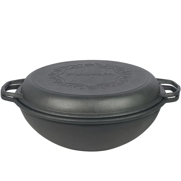 Казан "узбецький" WOK чавунний 12л з кришкою-сковородою гриль V12CPГрWok Майстерня