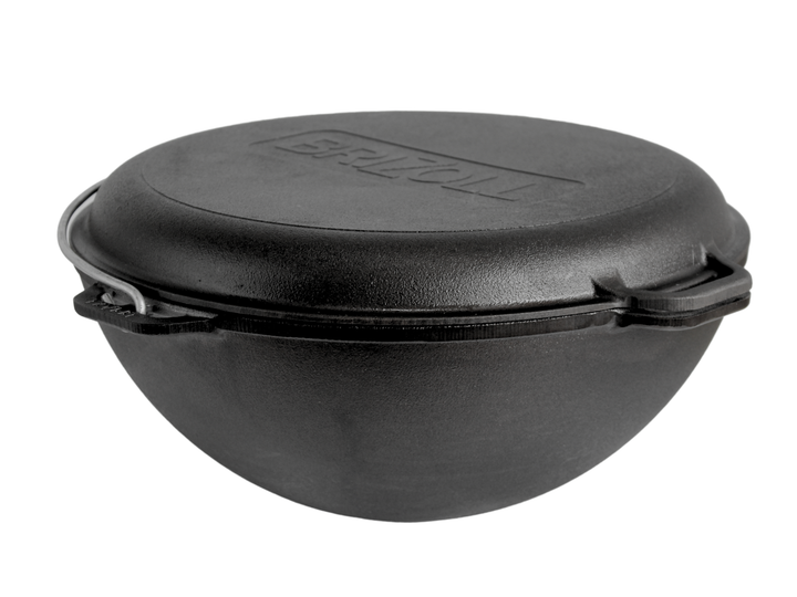 Казан чавунний 8 л Brizoll Азійський з дужкою та кришкою-сковородою гриль (КА08-3)
