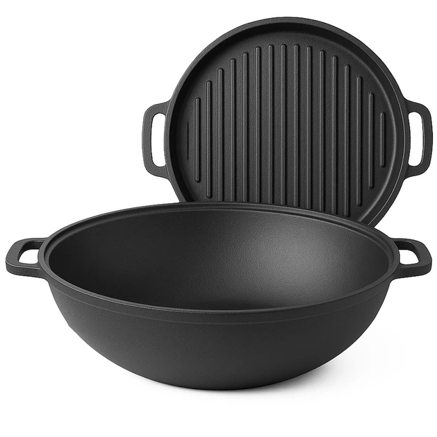 Казан чавунний WOK (Узбецький) 12л, 40 х 17.4см із кришкою-сковорідкою гриль