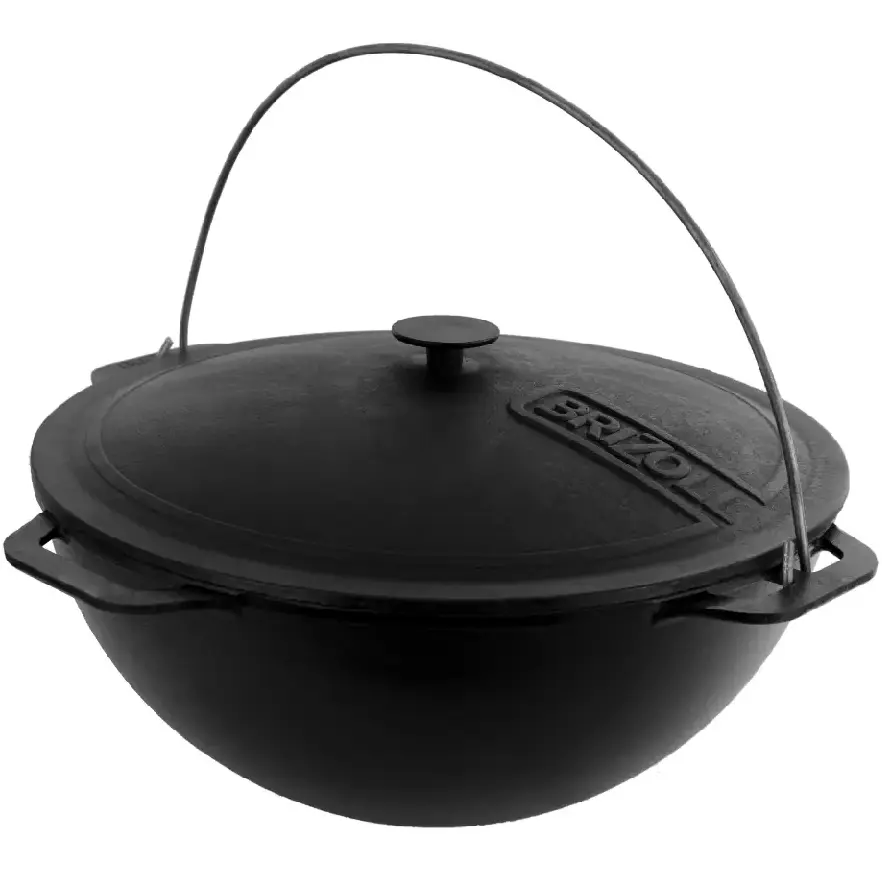 Казан чавунний Brizoll азіатський для приготування на вогні без кришки 8 л чорний