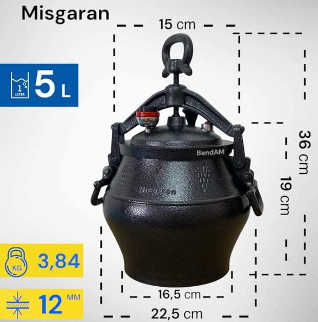 Афганський казан-скороварка 5 літрів алюмінієвий комбінований Misgaran
