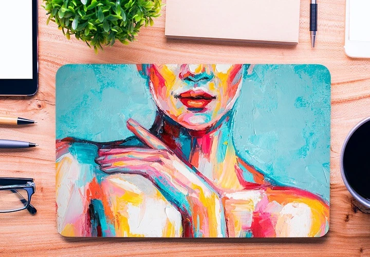 Наклейка на ноутбук для всіх моделей 15.6"-13.3” 385х260 мм Матова "Дівчина фарбами"