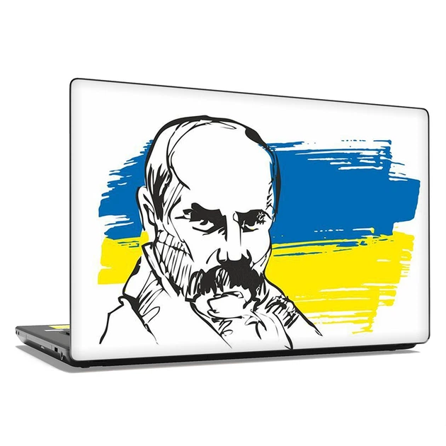 Вінілова наклейка на ноутбук з діагоналлю 15.6" (380х250мм) - Тарас Шевченко на тлі українського прапора