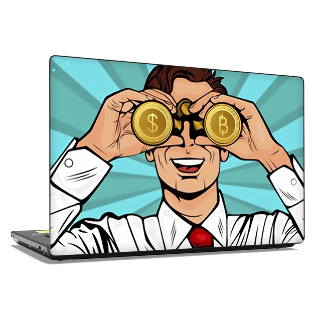 Вінілова наклейка на ноутбук з діагоналлю 15.6" (380х250мм) - Бинокль Біткоїн