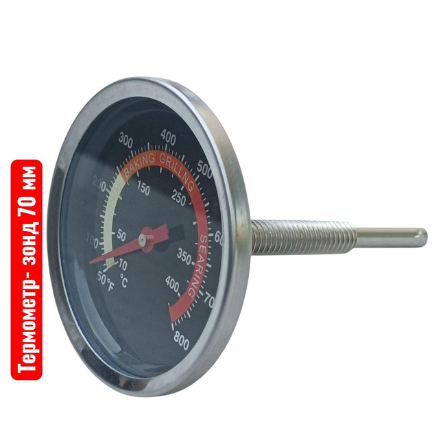 Термометр механічний для коптильні, мангала, духовки (+10...+450°C) - з датчиком 70 мм