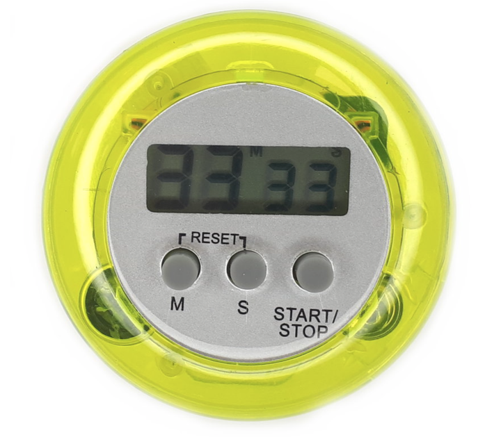 Кухонний таймер лимонного кольору з магнітом та підставкою