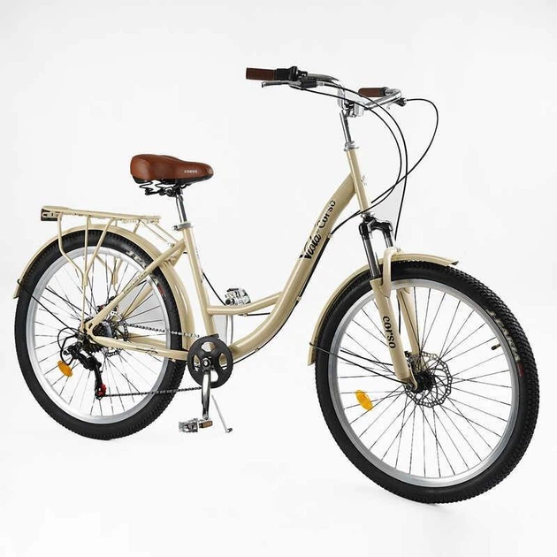 Велосипед міський 26 дюймів Corso Viola з багажником (Бежевий)