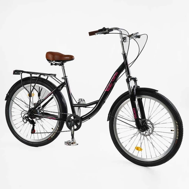 Велосипед міський 26 дюймів Corso Viola з багажником (Чорно-рожевий)