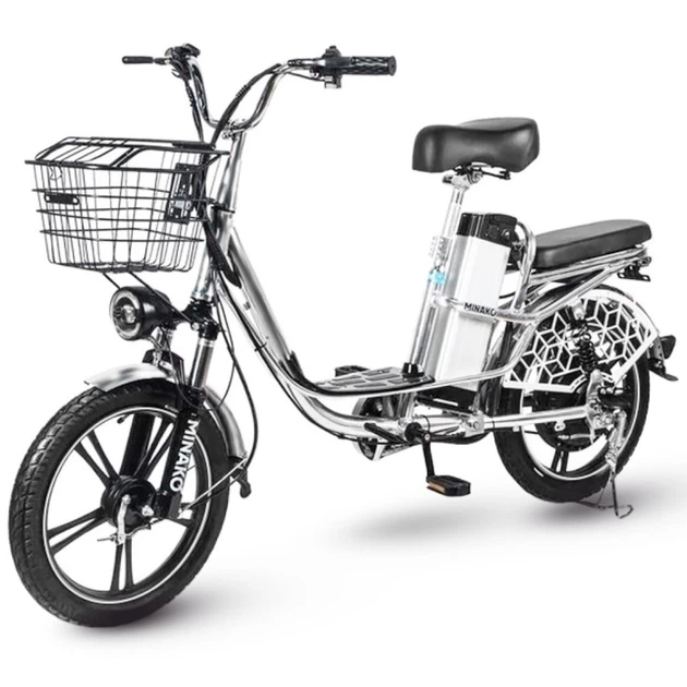 Электровелосипед MINAKO V8 Pro (48V, 15Ah, 600W) колеса 18", з багажником, заднім амортизатором і корзиною