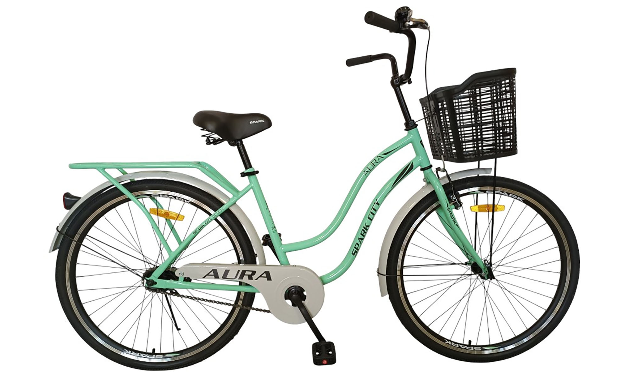 Вступ Spark City Aura — міський велосипед з колесами 26" на сталевій рамі 17", створений для щоденних поїздок без зайвої складності. Одношвидкісна трансмісія, класична схема гальмування — переднє V-brake та заднє ножне, повна міська комплектація у стандарті — все це робить його готовим до реальних маршрутів одразу після складання. Велосипед важить 15,32 кг і постачається зібраним на