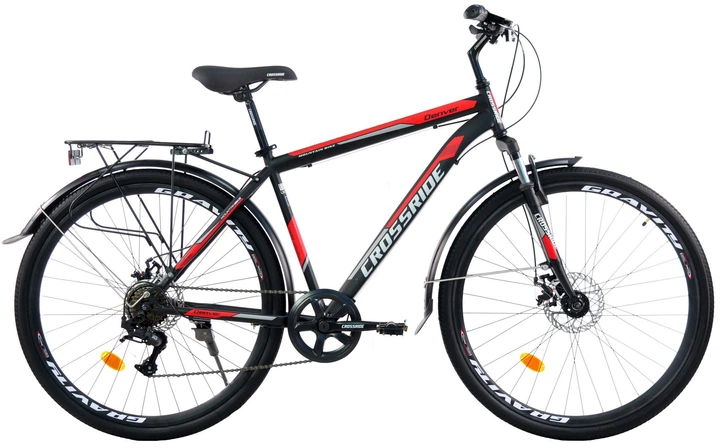 Велосипед міський 28 дюймів Crossride Denver з багажником, рама 17" (Чорно-червоний)