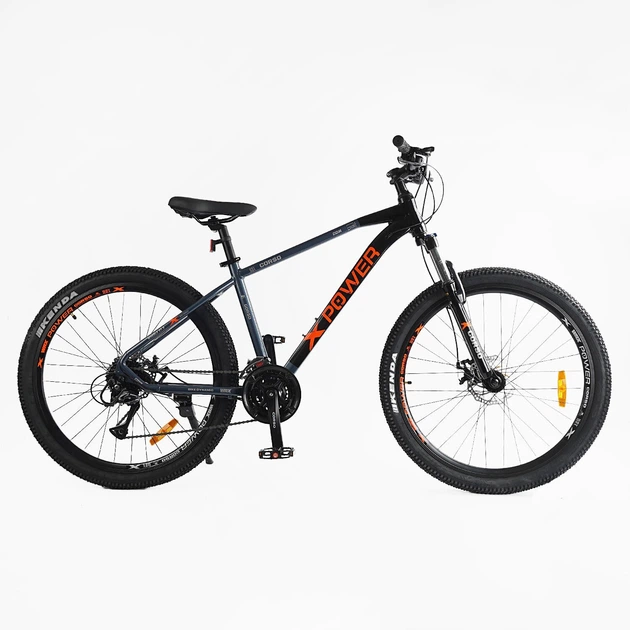 Велосипед гірський алюмінієвий CORSO «X-Power» 27.5 дюймів, рама 17" (Чорно-помаранчевий)