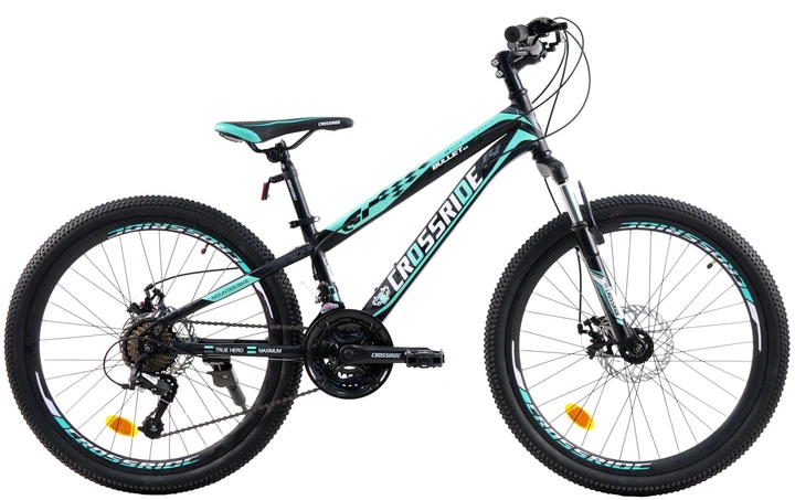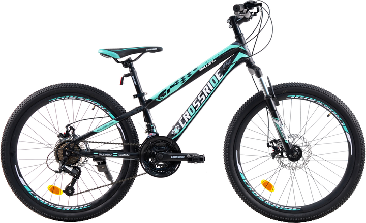 Велосипед гірський підлітковий 24 дюйми Crossride Bullet 2.0, рама 13" (Чорно-бірюзовий)