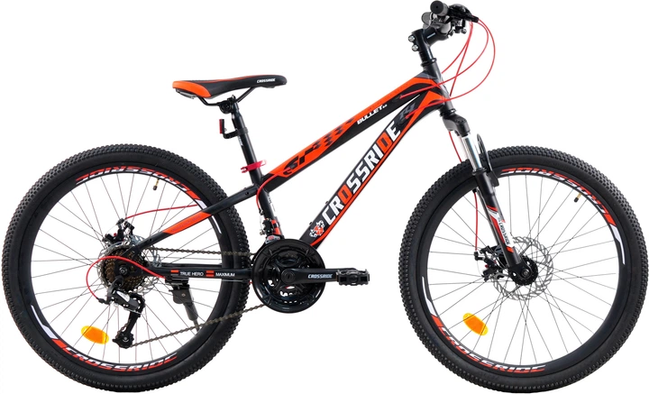 Велосипед гірський підлітковий 24 дюйми Crossride Bullet 2.0, рама 13" (Чорно-червоний)