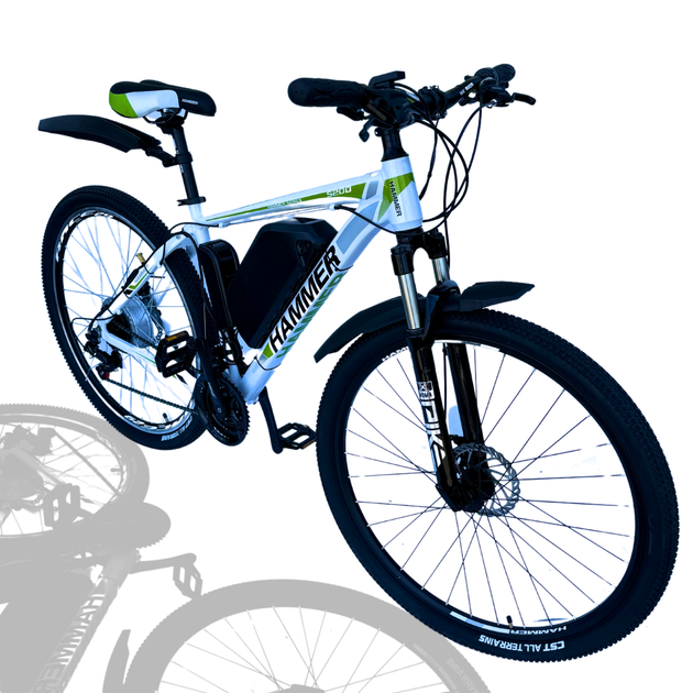 Велосипед с Е-комплектом HAMMER S200 2024 29 дюймів Рама 19 Біло-зелений 18 ah 500В 48В з маленьким дисплеєм/Pas-асистент