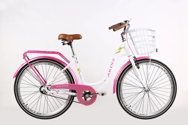 Велосипед міський 26 дюймів Ardis Berta з корзиною та багажником, рама 17" (Біло-рожевий)