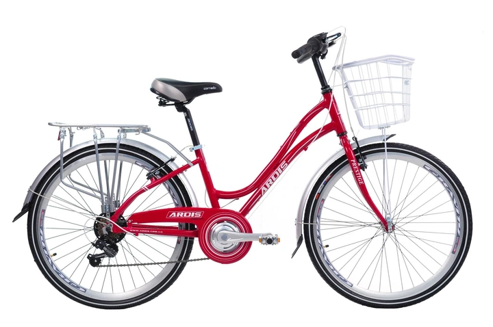 Велосипед міський алюмінієвий 26 дюймів Ardis Jardin з корзиною та багажником, рама 16" (Червоний)