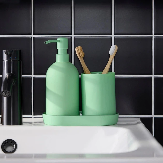 Набір аксесуарів Bright для ванної кімнати "Home Dispenser" 3 предмети, кераміка, зелений з білим
